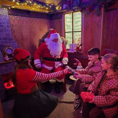Ewch i Ogof Siôn Corn i rannu eich dymuniadau Nadolig gyda'r dyn mawr ei hun, a pheidiwch ag anghofio pori ein torchau wedi'u gwneud â llaw a'n haddurniadau tymhorol.